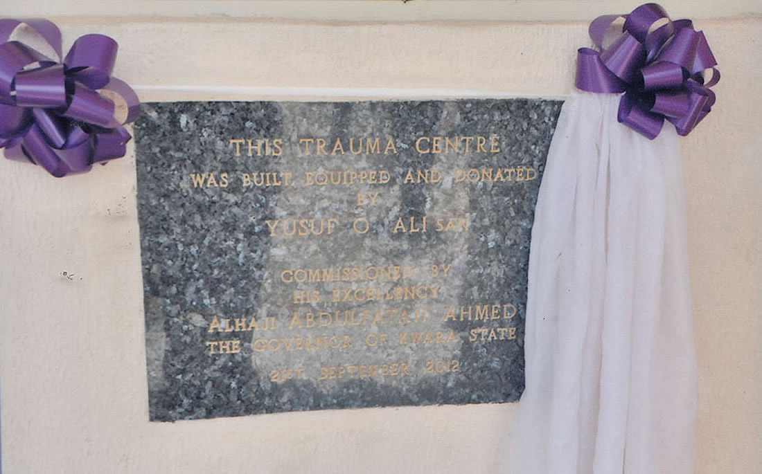 Last week, the Accident & Emergency Unit of the University of Ilorin Teaching Hospital (UITH) received a boost, with the commissioning of a Trauma Centre donated by Mallam Ola-Olu Ali (SAN) in memory of his wife who died of trauma related cases at the hospital after a motor accident eight years ago